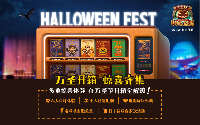 今年哈啰喂,香港海洋公园顽魂当道,六大惊吓体验等您开箱,直击内心最深处的未知恐惧!抽盲盒很上头?小心开到被诅咒的"AEON信用卡呈献:怨灵盲盒",抽中命定隐藏版永远被困!震惊全城的"九龙醺店呈献:港诡奇案"重启调查,您将重返现场拆解案情,真相可能比想象中更恐怖血腥!"H25.栗"实验室挑战您的感官极限,重重惊悚体验步步惊心,人人尖叫到失声!疯狂邪教布下"Trip.com呈献:诡宅献祭",用神秘卡牌决定您的生死命途,一切皆有定数!一旦误入"喰人之森",随时被凶残的食人族猎杀,看您能否从血色丛林逃出生天!来到"噬魂墓地"越走越阴森,千万不要打扰亡魂,否则九死一生!成功逃离就去参加"亡灵狂欢庆典"与鬼同乐投入热闹气氛,还有在园内不同地方上演的十大怪趣汇演,包括首度登场的"华丽地狱OPPA Show",大受欢迎纸扎舞团再度搞鬼回归,一系列"王炸级"精彩表演您又怎么可以错过!想体验怪诞路线?可以到"亿世家"好盏鬼电器"呈献:全民Trick-or-Treat",一家大小玩游戏赢糖果,晚上更可参加"光影盛夜:哈啰喂魅光派对",感受集视听之娱的超震撼时刻。约定您开箱全园惊喜体验,出来玩,就要做好准备,不吓不归!