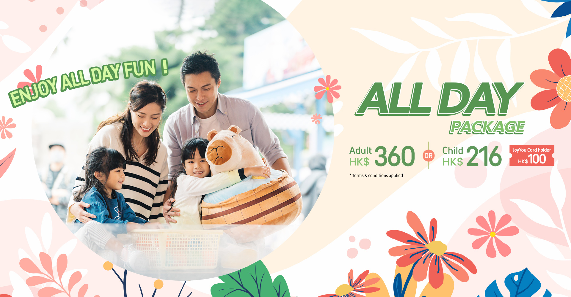 * Except for children aged below 3, Hong Kong citizens aged 65 or above and guests with “Registration Card for People with Disabilities” issued by Labour and Welfare Bureau in Hong Kong.